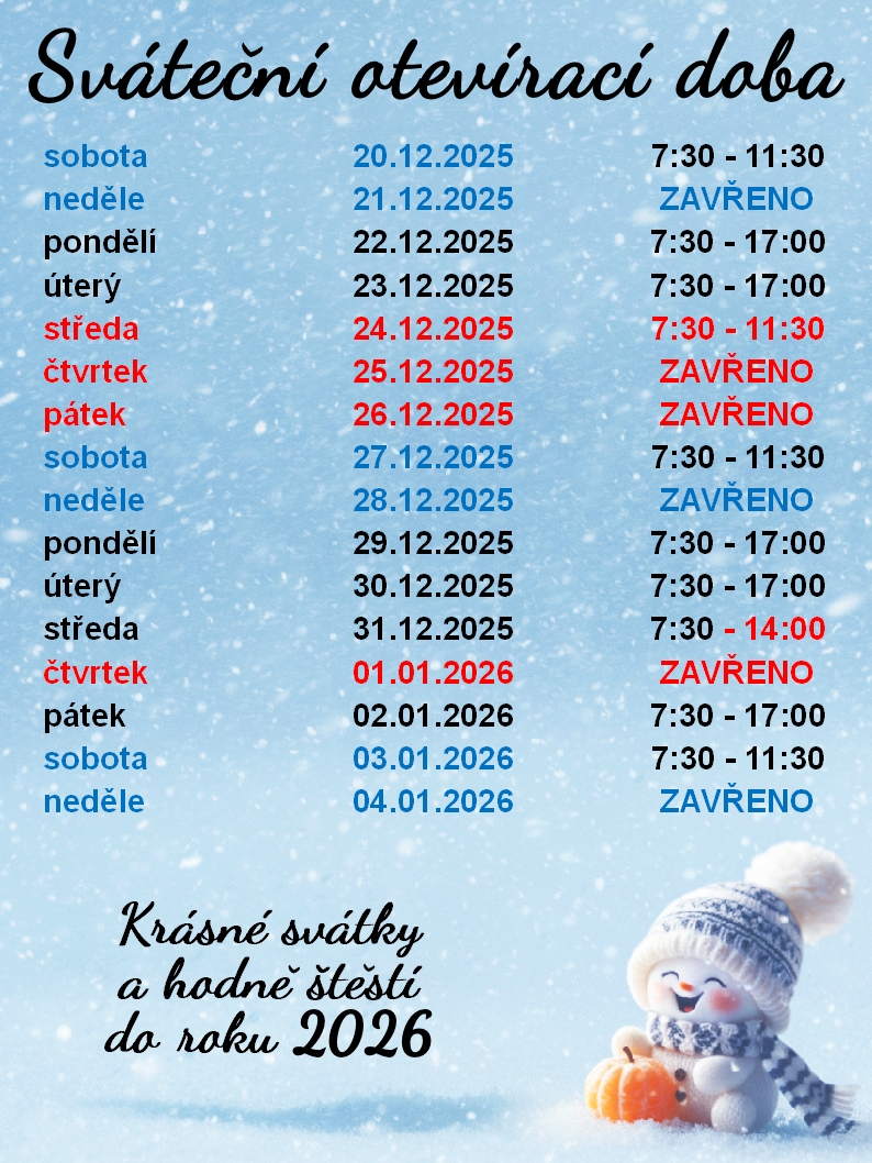 Po - Pá: 7.30 - 17.00 hodin, So: 7.30 - 11.30 hodin